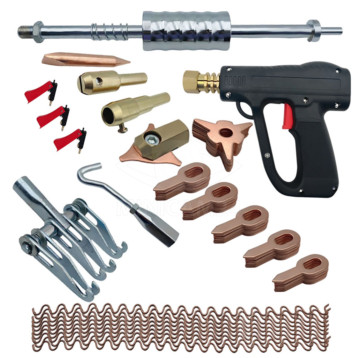 Этот набор для пайки Weldum включает все необходимые инструменты для выполнения как мелкого, так и крупного ремонта кузовных элементов, что делает его отличным выбором для мастерских и гаражных условий. В комплекте вы найдете 10 треугольных электродов, 50 шайб, а также другие важные компоненты, включая магнитный держатель и обратный молоток для сложных операций с металлом.