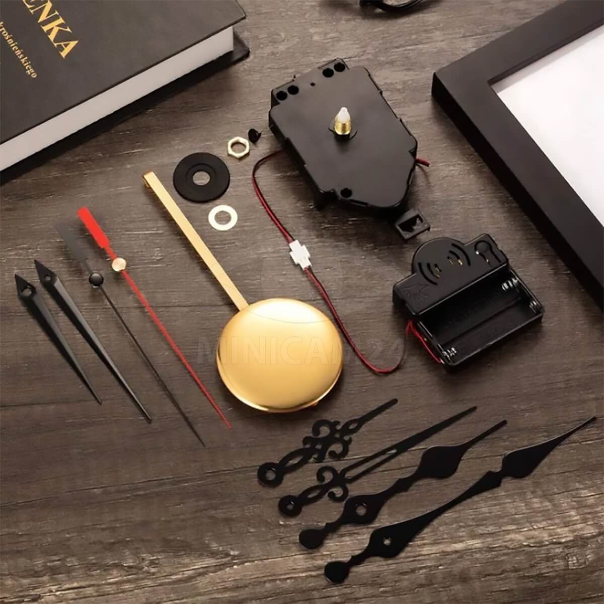 В комплекте с механизмом поставляется качающий механизм для маятника, золотой маятник для элегантного внешнего вида, а также музыкальная шкатулка для приятной атмосферы. Кроме того, вы получаете три комплекта часовых, минутных и секундных стрелок, позволяя вам выбирать наиболее подходящий дизайн для ваших часов.